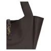 The Saint Laurent Le 5 à 7 Shoulder Bag is crafted from refined grained leather, featuring a lightweight construction and luxurious tonal suede lining. The East/West design ensures spaciousness and functionality, enhanced by a leather tab closure decorated with the iconic Cassandre detail. An internal zip pocket offers additional practicality, while side ties allow for volume adjustment, creating versatile and always elegant silhouettes.