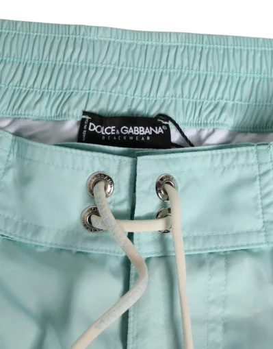 Absolutely stunning, 100% Authentic brand new Dolce & Gabbana swim shorts. Crafted in Italy from high-quality nylon, these beach shorts feature a refreshing aqua blue tone, elastic waistband with drawstring closure, side and cargo pockets for functionality, and full mesh lining for comfort. Perfect for both beach and poolside style.