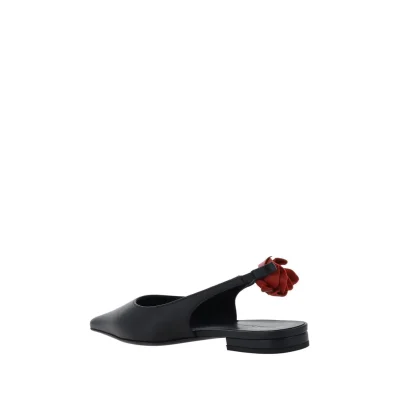 Leather Ballerinas by Magda Butrym, elongated toe, slingback at back with 3d floral applique detail, flat sole, logo-embossed insole.