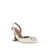 Begum Pumps are made of leather and feature an elongated almond toe and geometric leather heel, the brand’s iconic signature. The slingback detail on the heel lends sensuality, while the rhinestone and glitter jewel on the toe adds a precious touch. The press-studded logo leather insole completes this elegant and sophisticated creation.