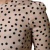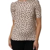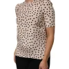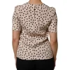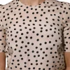 Beige Black Polka Dot Silk Short Sleeve Blouse Top