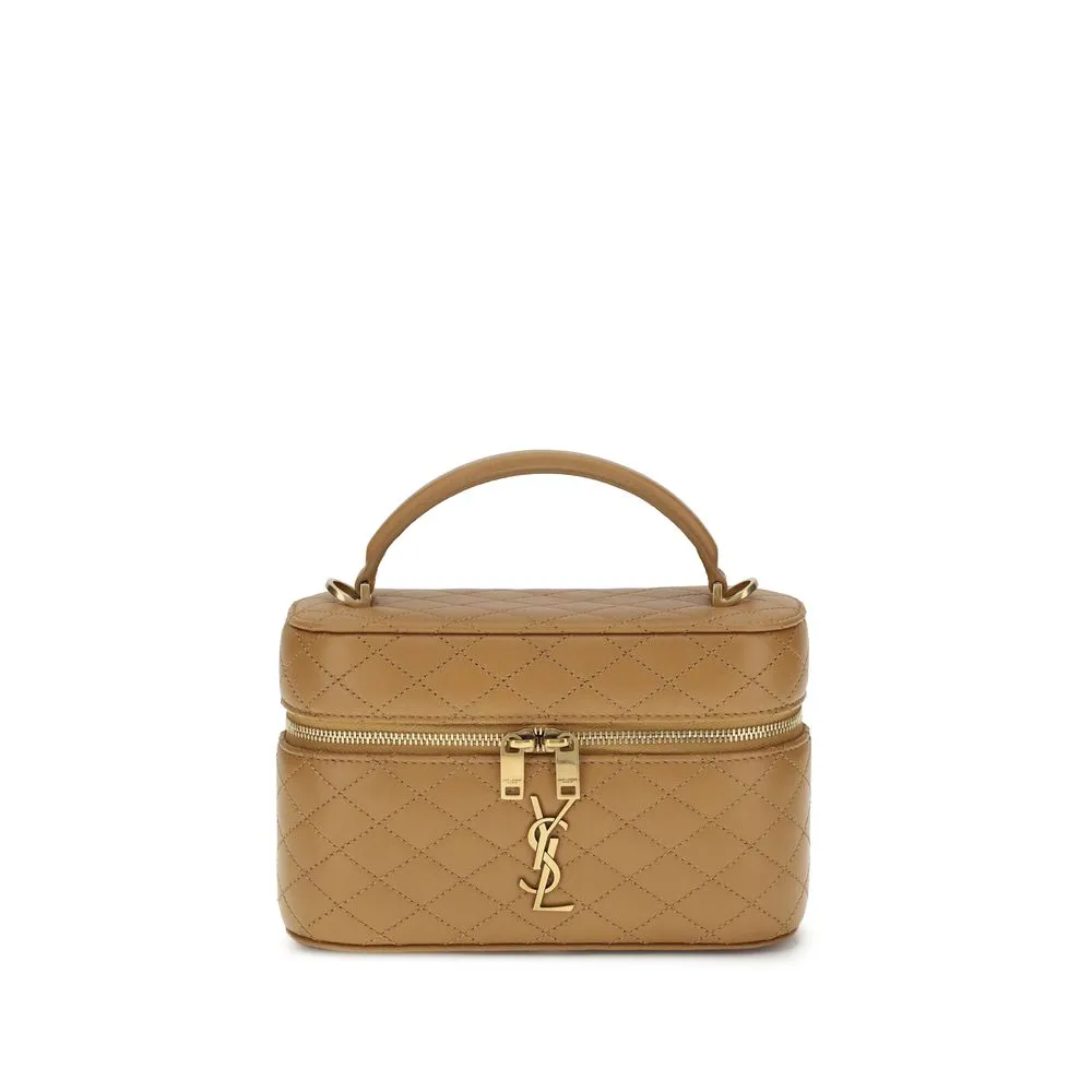 The Vanity Gaby leather Handbag by Saint Laurent combines elegance and practicality in a compact and refined design. Featuring an all-over quilted finish, it features a flat top handle, a double-slider twist closure, and an adjustable and removable flat shoulder strap. The distinctive touch is the three-dimensional plaque with the iconic YSL logo on the front panel.