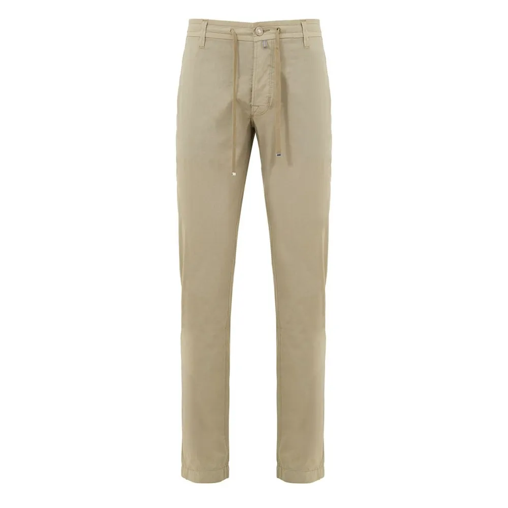 In lightweight beige cotton, five pockets, adjustable drawstring waist and buttons, relaxed carrot fit. Beige ponyskin tag with embossed logo on the back. Scented with the exclusive Jacob Cohen fragrance.