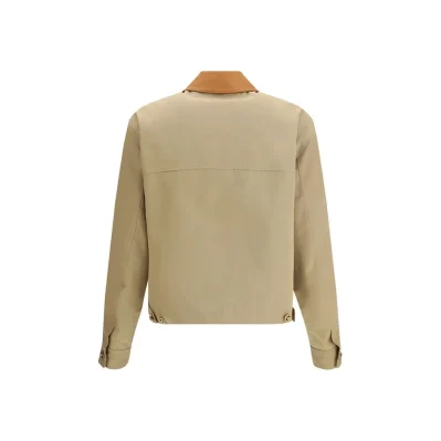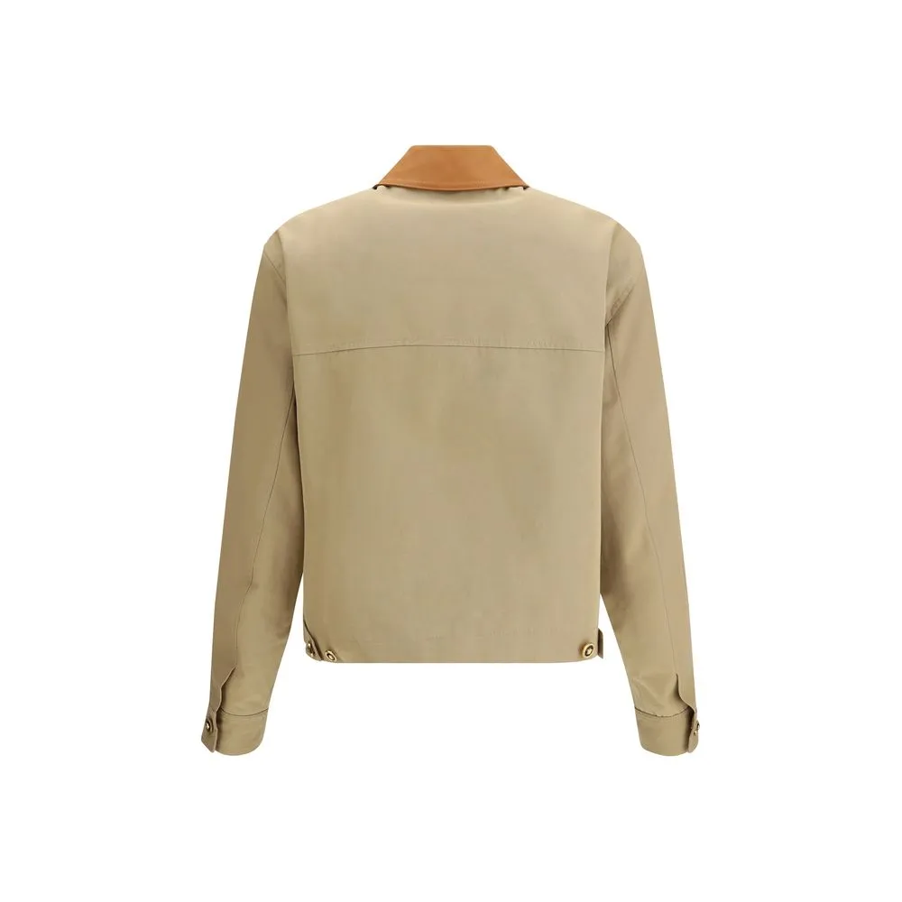 The cappuccino cotton Jacket by Versace reimagines everyday outerwear with understated sophistication and couture-level detailing. A contrasting leather collar introduces a bold note to its clean, structured silhouette, while the concealed front zip maintains an uninterrupted, streamlined look. A chest pocket and two front welt pockets blend seamlessly into the minimalist design, enhanced by buttoned cuffs and adjustable hem tabs that refine the fit. The fully lined interior, complete with practical welt pockets, reflects the Maison’s dedication to comfort and functionality, elevating this essential jacket into a piece defined by precise, contemporary elegance.