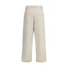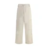 The Carré de-Nîmes cargo Jeans bring a contemporary twist to a utility classic. Crafted from soft cotton and hemp denim, they feature a high waist with engraved metal button closure and belt loops. Wide, straight legs are reinforced with stitched details at the knees, emphasizing durability and style. Oblique front pockets, applied side cargos, and laser-printed back pockets combine practicality with urban edge, while an embroidered patch on the back delivers a refined signature touch. A perfect balance between modern design and workwear heritage.