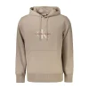 Indulge in the epitome of comfort and style with this Calvin Klein hooded sweatshirt. A perfect blend of fashion and sustainability, it boasts 95% regenerative cotton, ensuring you stay eco-chic. Featuring long sleeves and a handy central pocket, this brushed sweatshirt radiates with its signature logo and subtle print. It’s a beige statement piece crafted in BD that promises to elevate your casual ensembles.