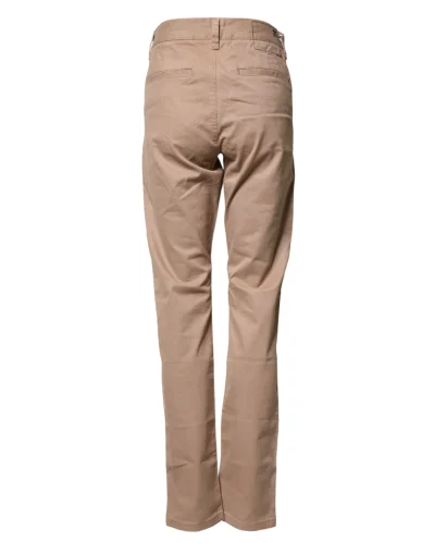 Beige Cotton Mid Waist Straight Men Chino Trouser Pants
