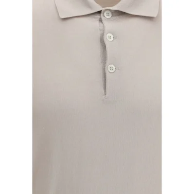 The Polo Shirt in cotton by Brunello Cucinelli conveys refined simplicity through a classic ribbed collar that brings balance and clean structure to the design. The tone-on-tone front buttons offer a discreet and elegant detail, while the ribbed sleeves with contrasting trim introduce a subtle yet distinctive touch. The ribbed hem completes the silhouette with definition, and the regular fit ensures a natural and composed outline. The Polo Shirt embodies Brunello Cucinelli’s understated sophistication, making it a versatile piece suited to a refined and effortless everyday style.