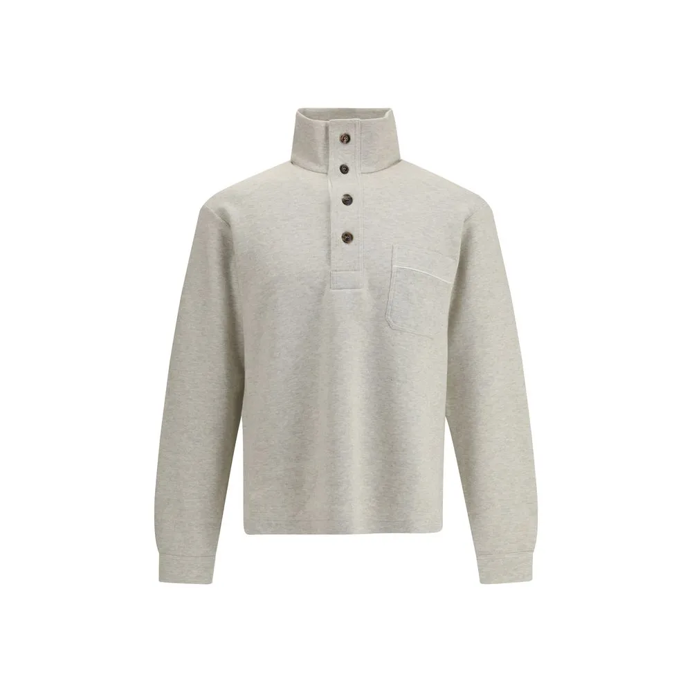 The cotton, silk and cashmere Sweatshirt by Tom Ford embodies the brand’s refined tailoring through premium materials and a timeless silhouette. Exceptionally soft and luxurious, the design features a sophisticated stand collar, a partial front button closure and a rounded patch pocket on the chest. The long sleeves are finished with buttoned cuffs, and the garment includes non-textile parts of animal origin.