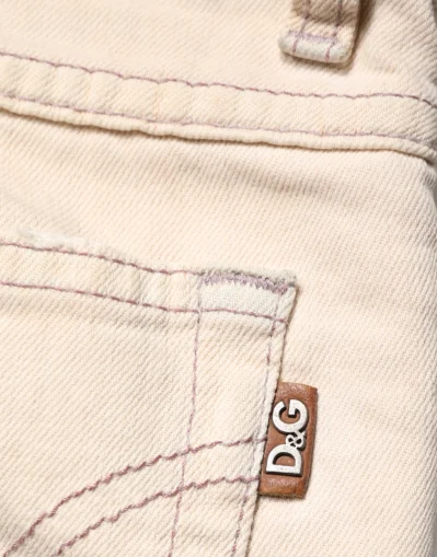 Beige Low Waist Cotton Slim Fit Denim Trousers Jeans