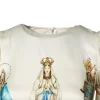 Gorgeous brand new, 100% Authentic Dolce & Gabbana dress features a striking Madonne print on luxurious beige silk. Designed with short sleeves and a refined silhouette, it embodies the brand’s signature blend of Italian artistry, devotion, and timeless sophistication.