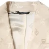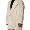 Beige Polyester Logo Monogram Coat Jacket