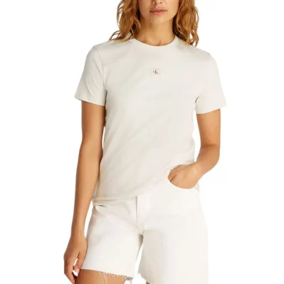 Discover the Calvin Klein Jeans WOVEN LABEL REGULAR short-sleeve t-shirt for women, an essential piece for your wardrobe. Made from 100% recycled cotton, this t-shirt provides a soft and comfortable feel against the skin. The simple yet refined design is enhanced by the distinctive Calvin Klein logo, making it perfect for any occasion, from casual to more elegant. Pair it with your favorite jeans for a stylish look.
