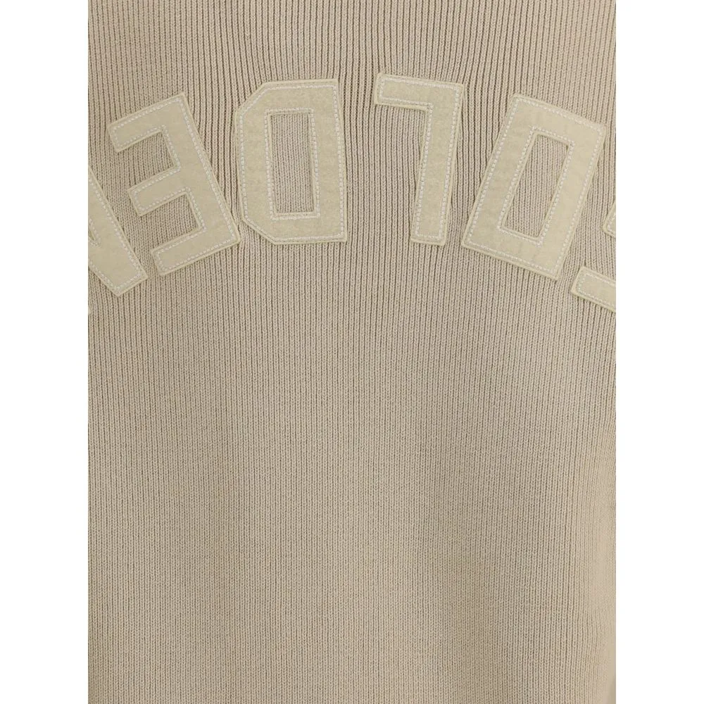 Beige ribbed-knit sweater by Golden Goose combines comfort and style. The crewneck and long sleeves provide a versatile fit, while the printed logo on the back adds a distinctive detail that makes the piece instantly recognizable. Perfect for casual-chic outfits or layered with more sophisticated pieces