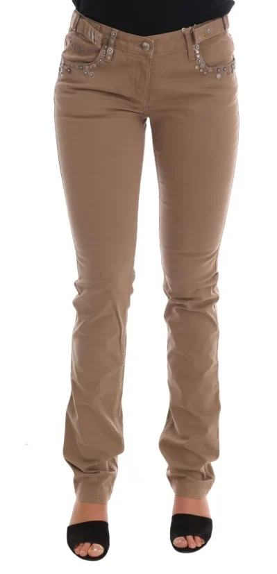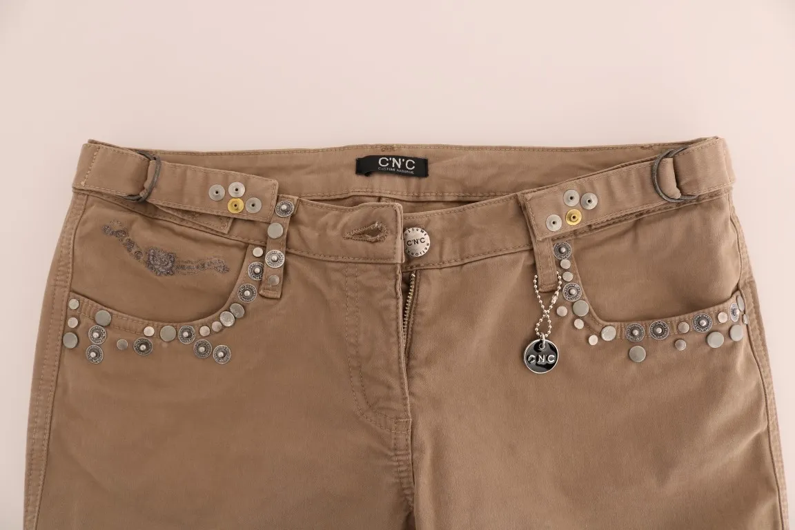 Beige Cotton Stretch Slim Fit Jeans