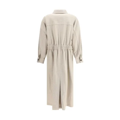 Brunello Cucinelli’s Long Coat is a timelessly elegant garment perfect for any occasion. Featuring a classic collar and a front button closure, it has two flap patch pockets on the chest and two side patch pockets, combining practicality and style. The matching, adjustable waistband allows you to define the silhouette, adding a touch of sophisticated personalization to the design. A versatile and refined garment that combines warmth and luxury.