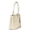 Exude confidence with the GUESS JEANS Phaedra Bag, a statement piece that effortlessly balances practicality with style. This beige stunner features dual shoulder handles for versatile carrying options and a detachable internal pouch for organization on-the-go. Accents of contrasting details add a bold flair, while the snap closure secures your essentials. Finished with the iconic GUESS JEANS logo and protective feet to keep your bag pristine.