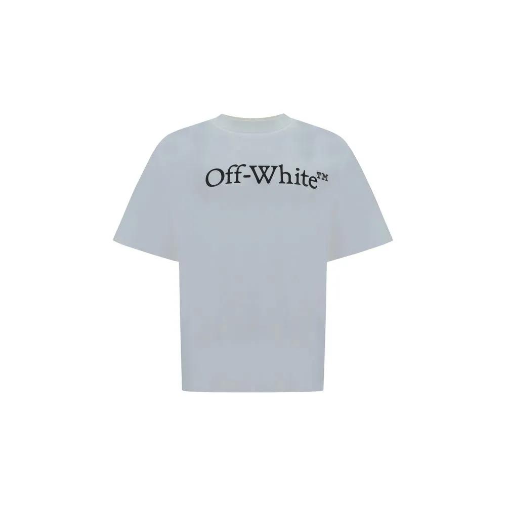 Cotton Big Bookish Skate T-Shirt by Off-White, features ribbed crew neck, contrasting iconic brand monogram on front, monochrome pattern, regular fit.