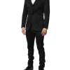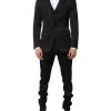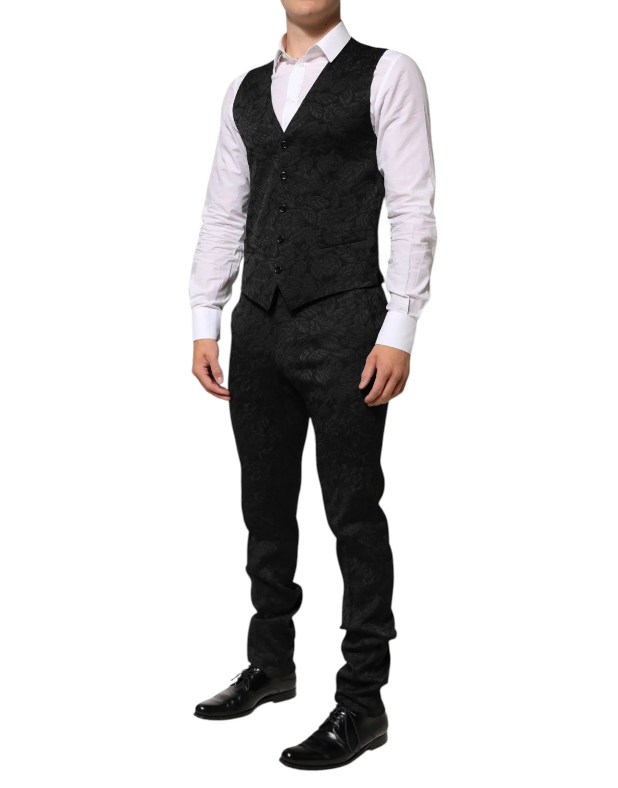 Black 3 Piece Brocade Jacquard Suit MARTINI