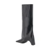 Coperni’s Bridge leather High Boots stand out for their contemporary and bold design. Their knee-high design and square toe define a bold silhouette, complemented by a practical slip-on fit. The geometric heel gives the model an architectural touch, while the brand’s iconic monogram printed on the shaft adds a touch of unmistakable style.