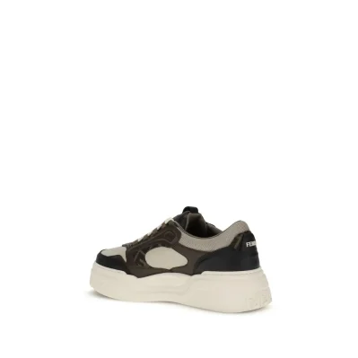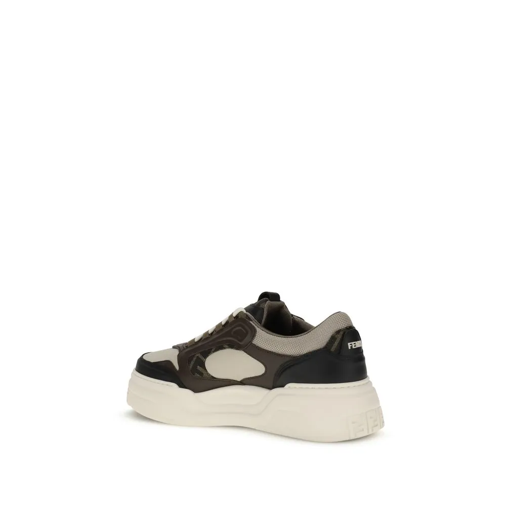 Fendi’s leather Sneakers are a perfect example of sophisticated urban style combined with comfort. The paneled design, combining different materials, gives a modern and dynamic silhouette, while the textured sole ensures a comfortable and stable walk. The round toe adds a fresh touch to the design. The front lace-up closure allows for an adjustable fit, while the press-studded logoed insole and label reinforce the brand’s understated luxury. An additional distinctive detail is the jacquard fabric panel with the repeated FF logo embedded in the side panels. The logoed sole and logoed insole complete the design, making these sneakers an elegant and recognizable accessory.