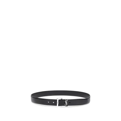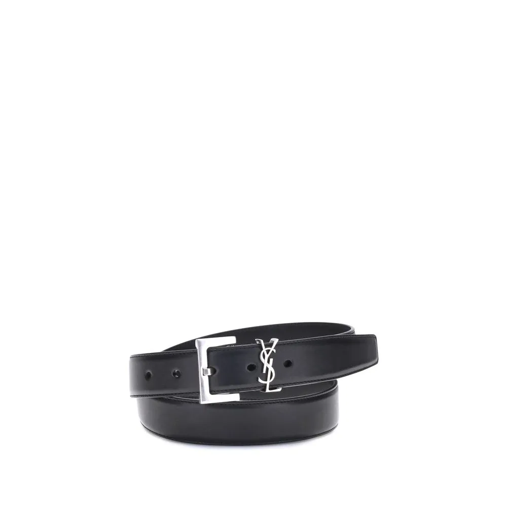 The leather Belt by Saint Laurent combines minimalist elegance with iconic details. It is embellished with a silver-colored geometric buckle and a three-dimensional YSL logo plaque, a symbol of refinement and timeless style. A versatile and sophisticated accessory, ideal for enhancing both casual and more formal looks.