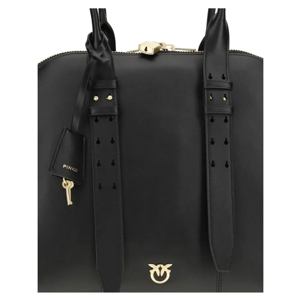 The Escape Bag maxi leather bowling Bag by Pinko blends functionality and style with the brand’s distinctive character. Crafted from soft leather with a cotton lining, it features an organized interior with a wall pocket and integrated card holder. Dual top handles allow for both hand and shoulder carry, ensuring versatility and comfort. The double zip-top closure is adorned with a padlock featuring the iconic Love Birds logo, which can be opened with the key tucked inside the leather charm. A spacious and refined accessory, ideal for adding a touch of modern elegance to everyday looks.