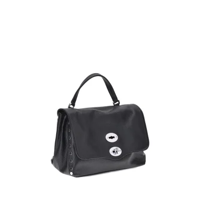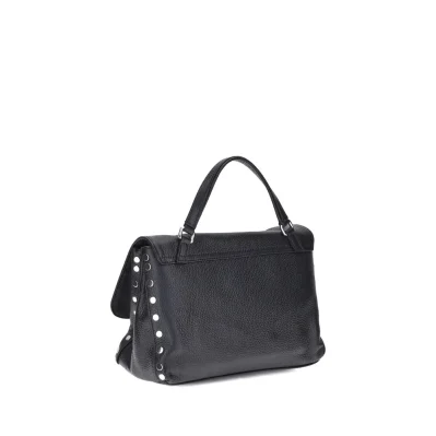 The leather Postina Daily Shoulder Bag by Zanellato is an elegant example of functionality and refined style. Featuring a single flat leather handle on top, it offers a front swivel hook closure that adds a touch of practicality. The adjustable and removable shoulder strap allows for different modes of use, while flat studs on the side panels add a characterful accent. Inside, two compartments and a welt pocket offer ample organization, making this bag an accessory as chic as it is functional.