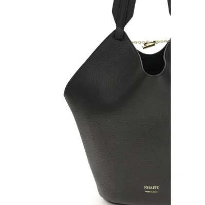The Lotus mini Shoulder Bag by Khaite stands out for its essential and sophisticated design. Crafted with clean, harmonious lines, it features a flat top handle for comfortable carry. The iconic press-stud monogram stands out on the front, while the top frog closure adds a touch of functional elegance. A distinctive accessory, perfect for completing refined looks with discreet originality.