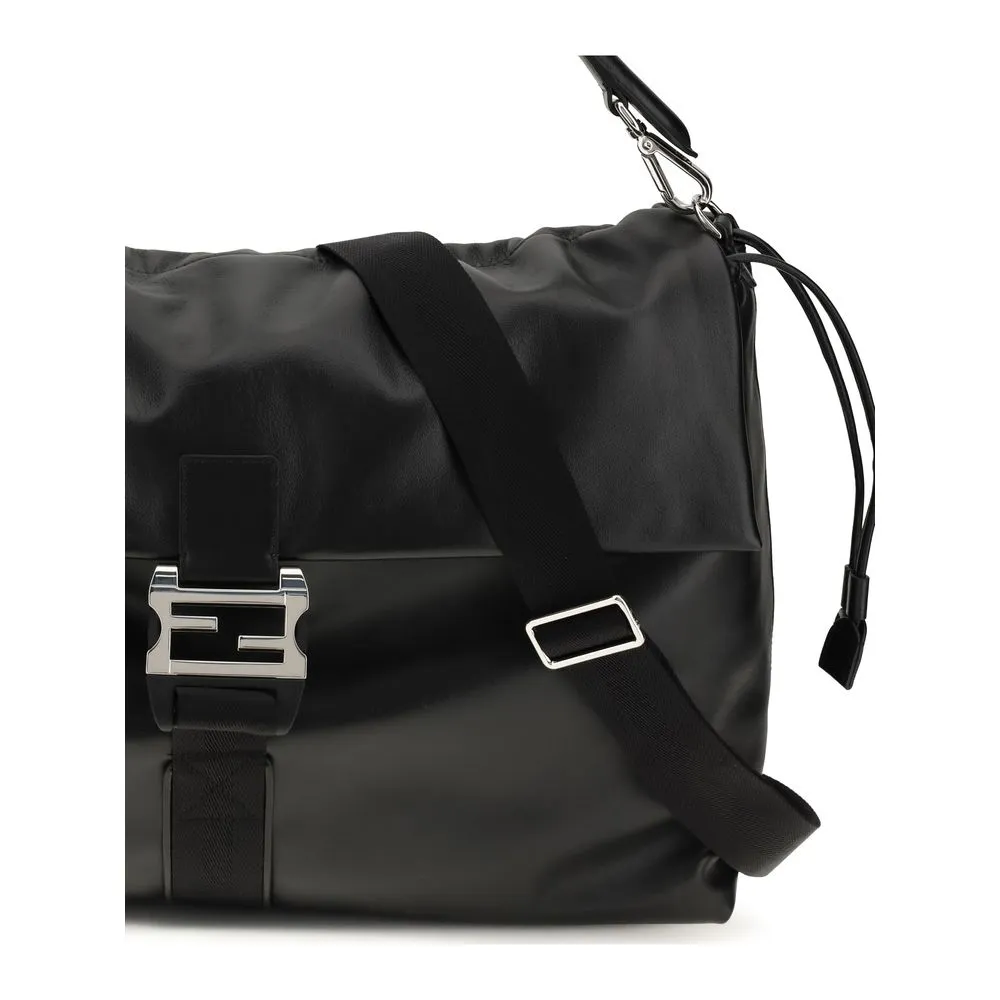 Mamma Baguette Shoulder Bag by Fendi is a masterpiece of elegance and versatility, made of soft nappa leather and decorated with the iconic FF closure, embellished with a tone-on-tone leather insert. The large suede-lined interior compartment is closed with a drawstring and cream-colored leather laces, while the front flap and magnetic button closure add a touch of sophistication. Metallic accessories with a gold finish complete the design, while the ability to wear it on the shoulder or cross-body, thanks to the removable handle and shoulder strap, makes it a practical and chic accessory for any occasion.
