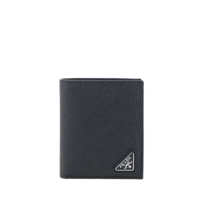 The Saffiano leather Wallet by Prada features an elegant billfold design that is both essential and refined. The characteristic triangular plaque with the brand’s logo stands out on the front, an iconic detail that underscores its identity. The interior offers practical card slots and a dedicated banknote compartment, ensuring order and functionality in a compact and stylish format.