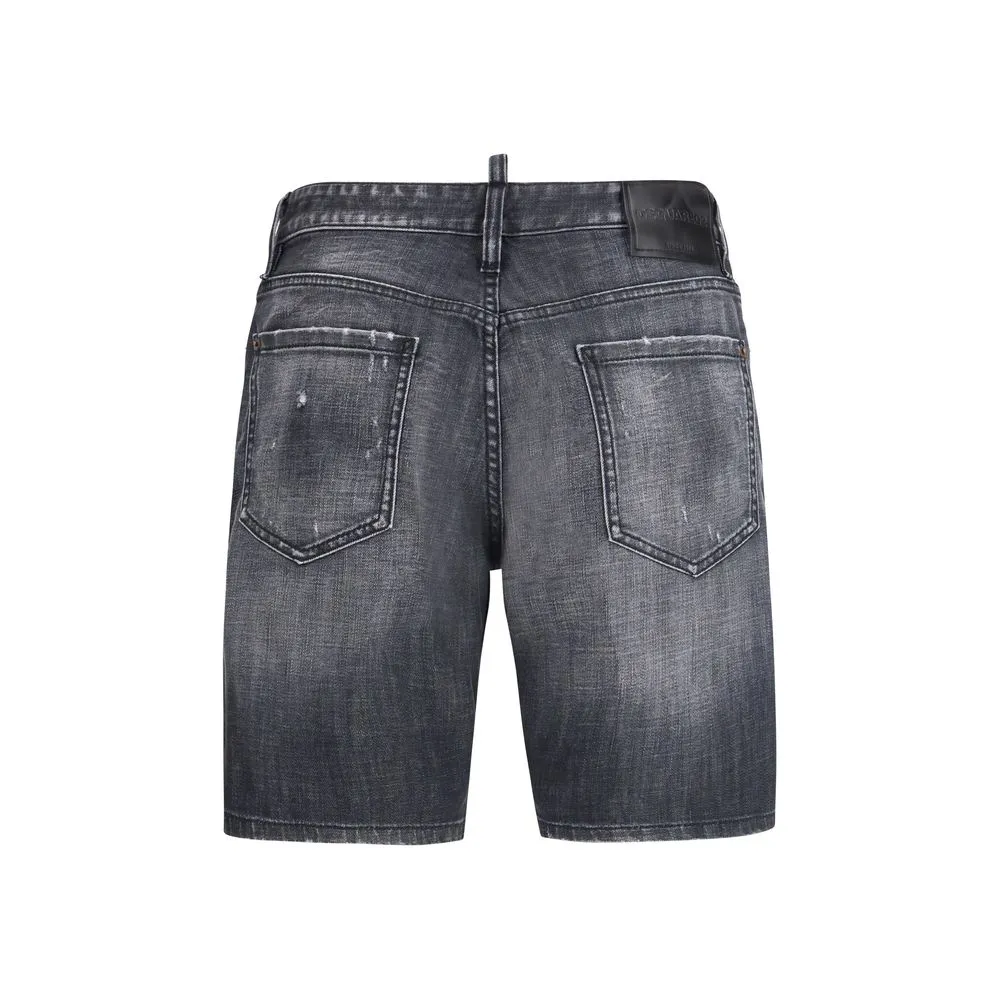 The Washed Marine Shorts by Dsquared2 are crafted from stretch cotton denim with a faded black wash. They feature the classic five-pocket construction, distressed detailing, and a used effect with whiskering. The look is finished with the Dsquared2 patch.