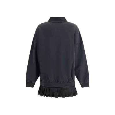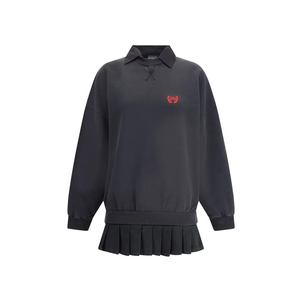 Balenciaga’s swatshirt Dress blends casual style and iconic details in a worn-in design. Featuring a ribbed crew neck and cuffs, it features an embroidered logo on the front and a pleated skirt that adds movement and femininity to the oversized silhouette.