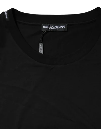 Black Cotton Crew Neck Short Sleeves T-shirt