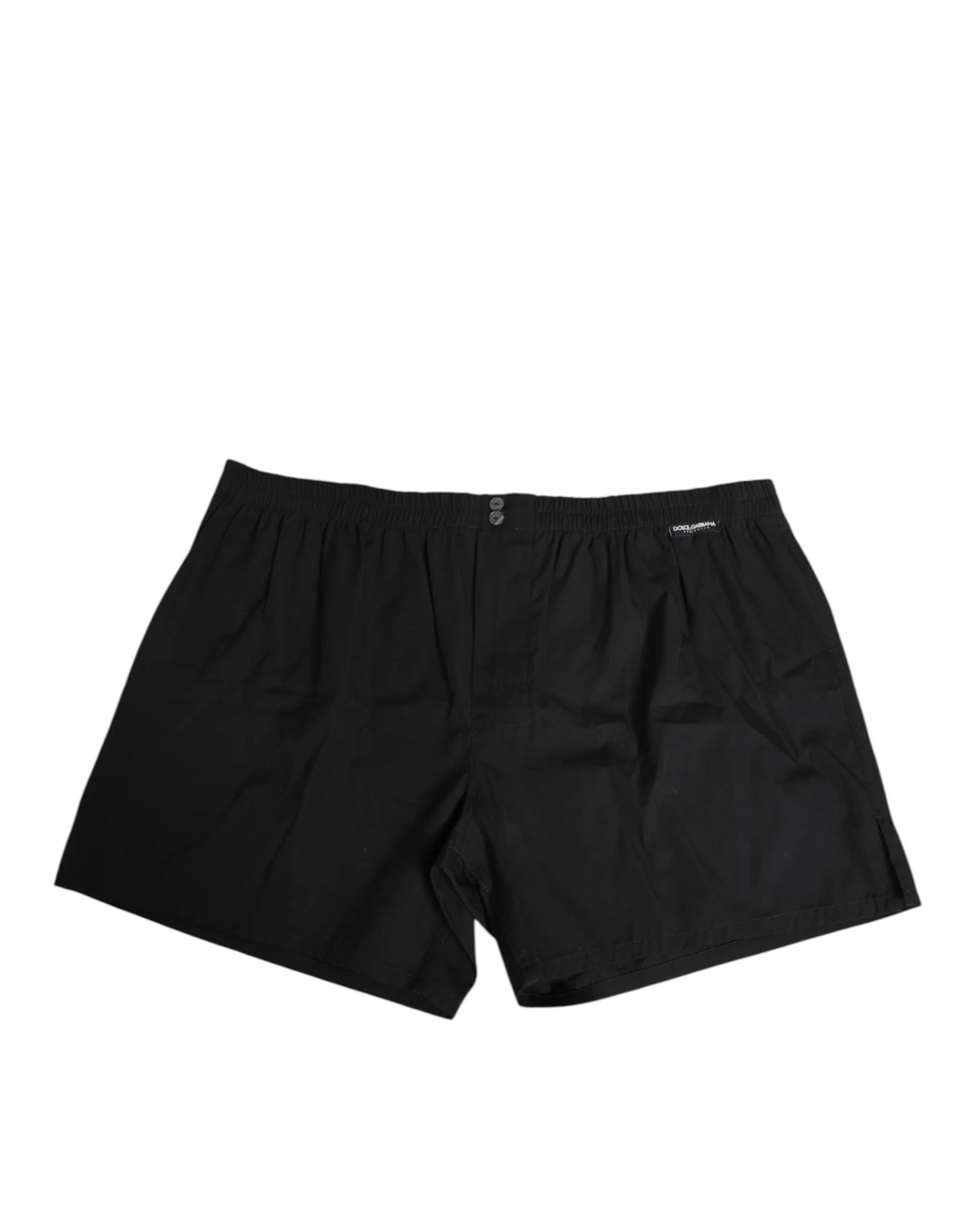 Black Cotton Elastic Waistband Button Swimwear