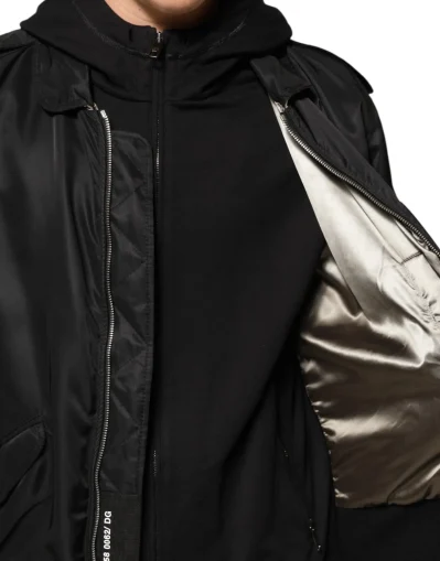 Gorgeous brand new, 100% Authentic Dolce & Gabbana bomber jacket is crafted from soft black cotton, offering a versatile and comfortable layering piece. It features a full-zip closure, drawstring hood, and ribbed cuffs and hem for a classic bomber silhouette — perfect for casual wear, adding a sleek and understated touch to everyday outfits.