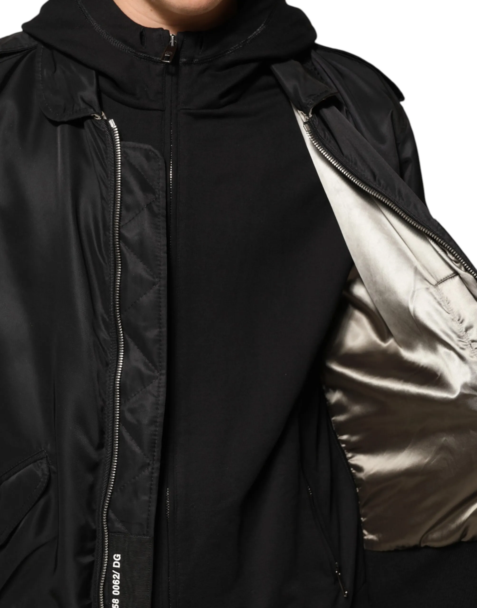 Black Cotton Hooded Full Zip Bomber Jacket Original price was: $2,049.00.Current price is: $989.00.