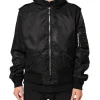 Black Cotton Hooded Full Zip Bomber Jacket