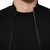 Black Cotton Logo Full Zip Men Bomber Jacket