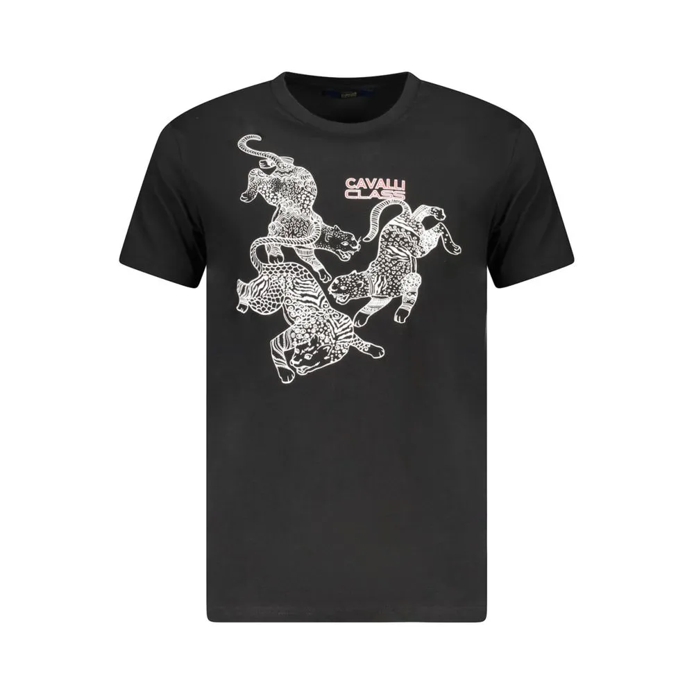 Dare to stand out with the Cavalli Class Short Sleeve Tee, a statement-making piece for the bold fashion lover. This crew neck t-shirt embodies the signature Cavalli Class allure with its striking print and unmistakable logo, catering to those who covet luxury with an edge. Crafted from premium cotton for ultimate comfort and durability, this black tee is a testament to both high fashion and everyday ease. Make it your go-to for an instant style uplift!