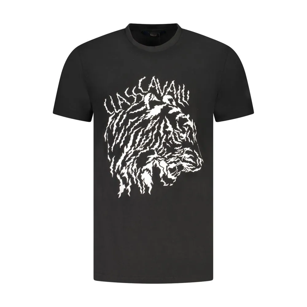 Dive into the epitome of high-end streetwear with this Cavalli Class masterpiece. This T-shirt boasts an eye-catching print that screams bold sophistication, along with the iconic Cavalli Class logo that makes a statement of luxury on the streets. Crafted with the finest cotton, it offers unparalleled comfort with a sleek crew neck and short sleeves perfect for trendsetters. A staple black hue ensures it pairs effortlessly with any wardrobe.