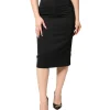 Black Cotton Pencil Cut High Waist Midi Skirt