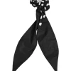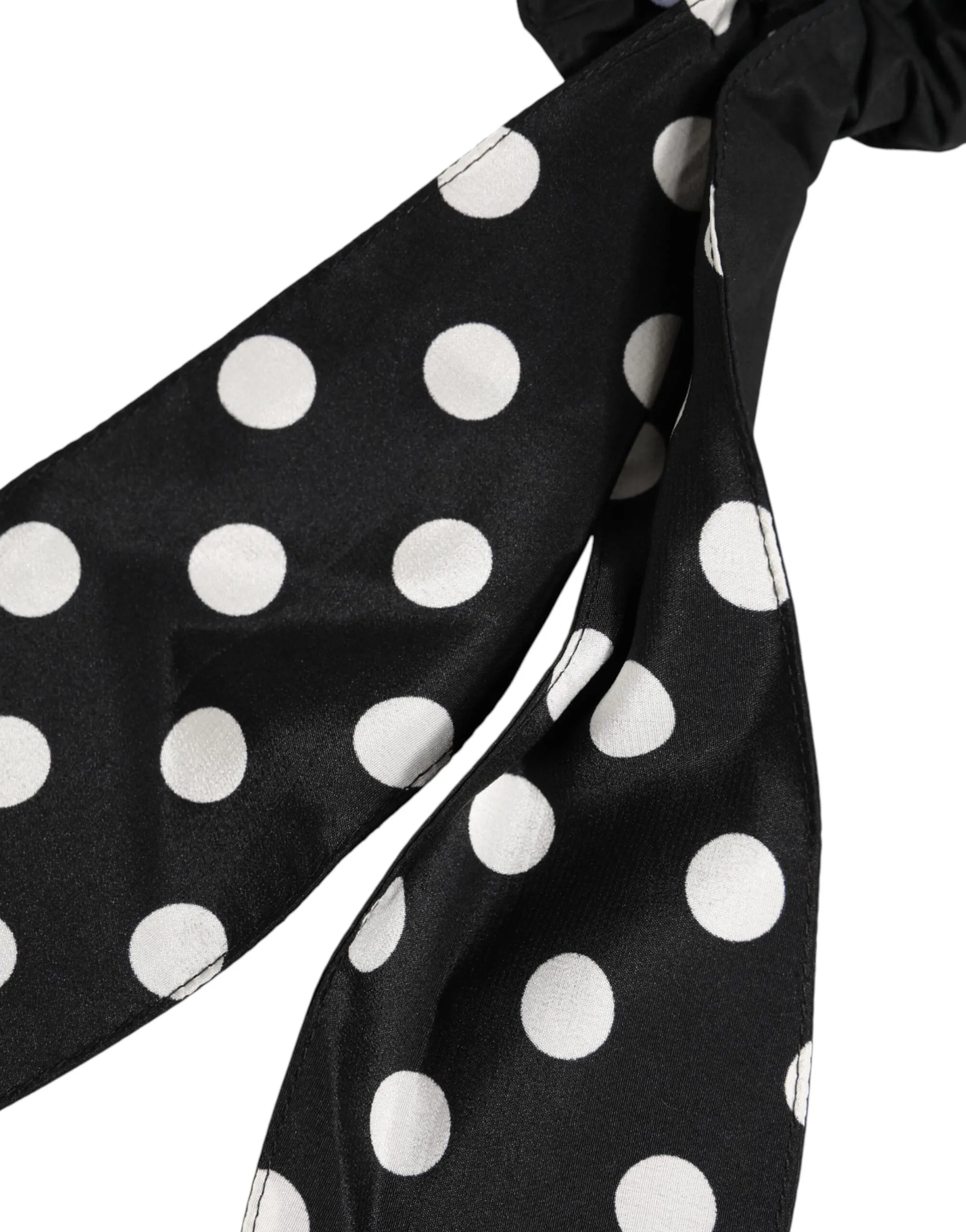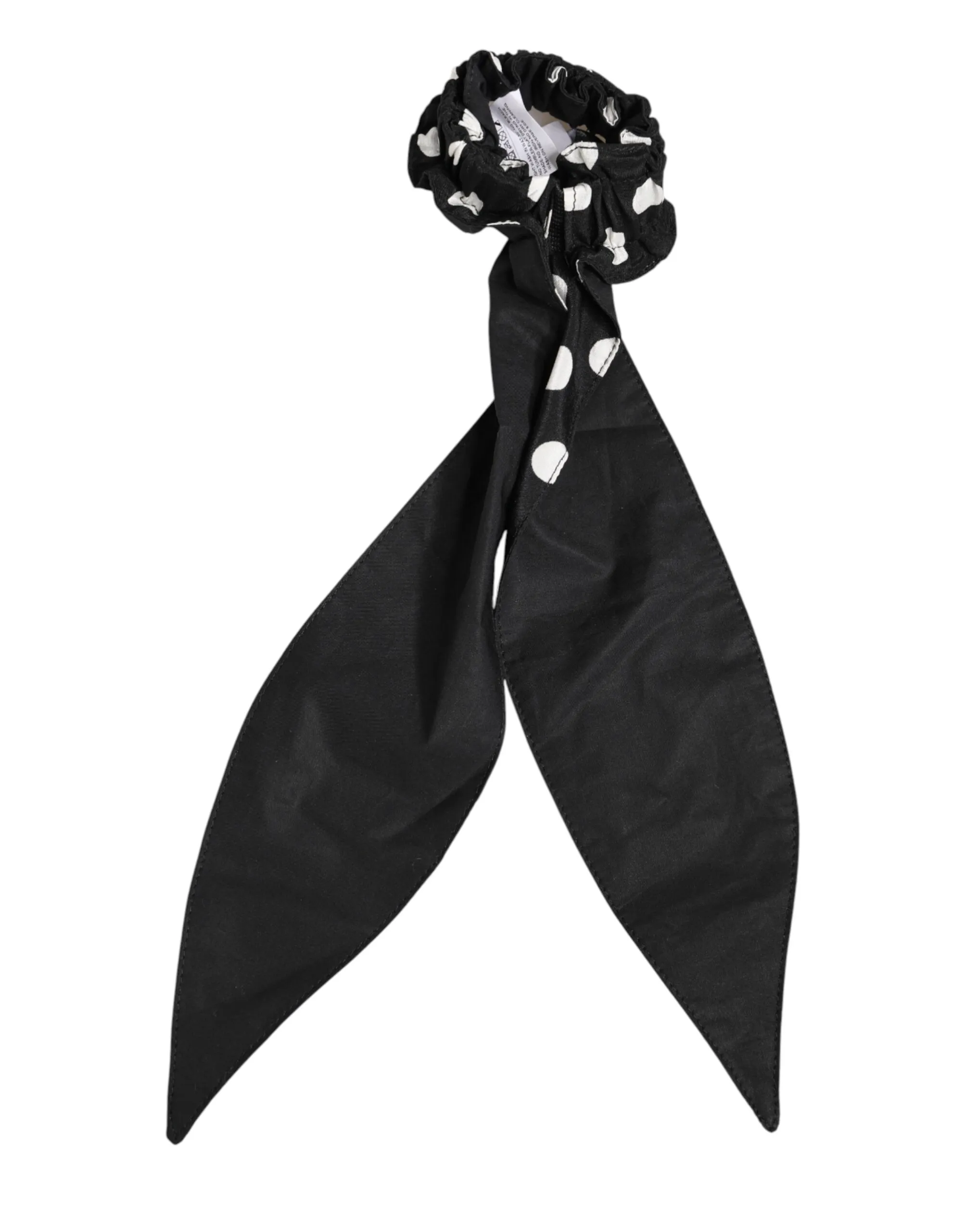 black cotton scrunchie, designed with classic polka dots and an attached scarf tie. Feminine and timeless, it effortlessly elevates ponytails, buns, or wrist styling with iconic Italian charm. Perfect for elegant everyday looks or stylish summer ensembles.