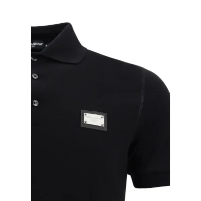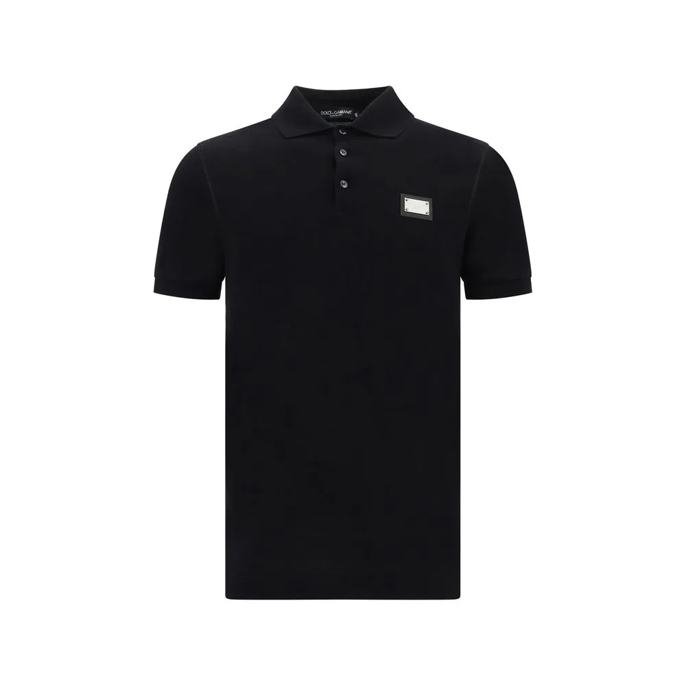 Cotton Polo Shirt by Dolce&Gabbana, classic ribbed collar, tone-on-tone front buttons, metal plaque with the brand’s iconic D&G monogram engraved and applied on the front, regular fit.