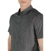 The Armani Exchange men’s short-sleeve shirt model XM000624 AF13184 is the perfect choice for those seeking a smart yet casual look. Crafted from a blend of 97% cotton and 3% elastane/lycra, this shirt ensures a comfortable fit with a hint of stretch, adapting perfectly to the male silhouette. The design features a classic collar and a hidden button closure, making it suitable for both casual and more refined outfits. The fabric boasts a subtle, refined pattern that adds a modern touch while maintaining practicality. Ideal for warmer seasons, this shirt pairs easily with jeans or chinos for a versatile and fashionable look.