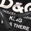 This limited edition, handmade black cotton tank features bold D&G logo print on the front with text details “King Was There”. It has a unique zipper detail across the chest for a modern, edgy look. Perfect for casual wear or layering.