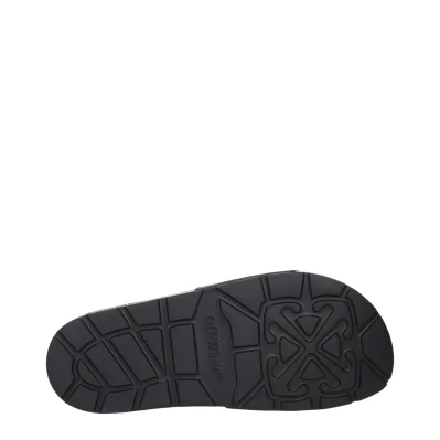 The product with MPN OWIU001MAT0011001 and code F84957 rubber in black is a slippers and clogs designed by Off-White. It has features like front logo.
