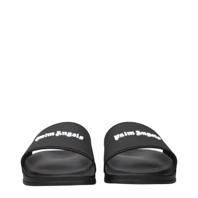 The product with MPN PMIC010MAT0011001 and code F84872 rubber in black is a slippers and clogs designed by Palm Angels. It has features like front logo.