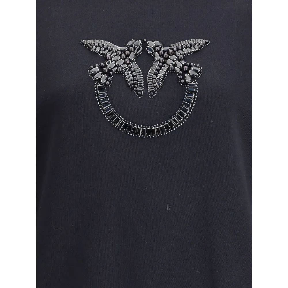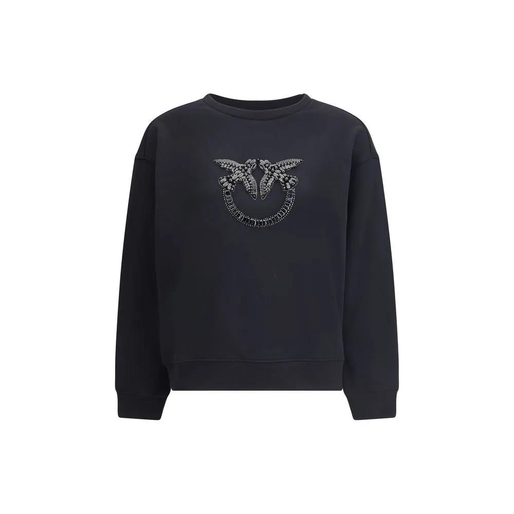 Pinko’s embroidered logo Sweatshirt combines comfort and style with precious details. Featuring a ribbed crew neck, cuffs and hem, the logo on the front is embellished with pearls and rhinestones, giving the garment a touch of elegance and shine.