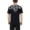 This men’s short-sleeved t-shirt by COUNTY OF MILAN, model F5CAMATH041, is crafted from 100% high-quality cotton. The standout feature is its contemporary design, highlighted by a striking snake graphic print around the neckline, giving the piece an urban and distinctive touch. The regular fit ensures comfort and freedom of movement, making it ideal for everyday casual wear or more refined occasions. Easy to pair with jeans or sporty trousers, this t-shirt is perfect for those who appreciate originality and attention to detail.